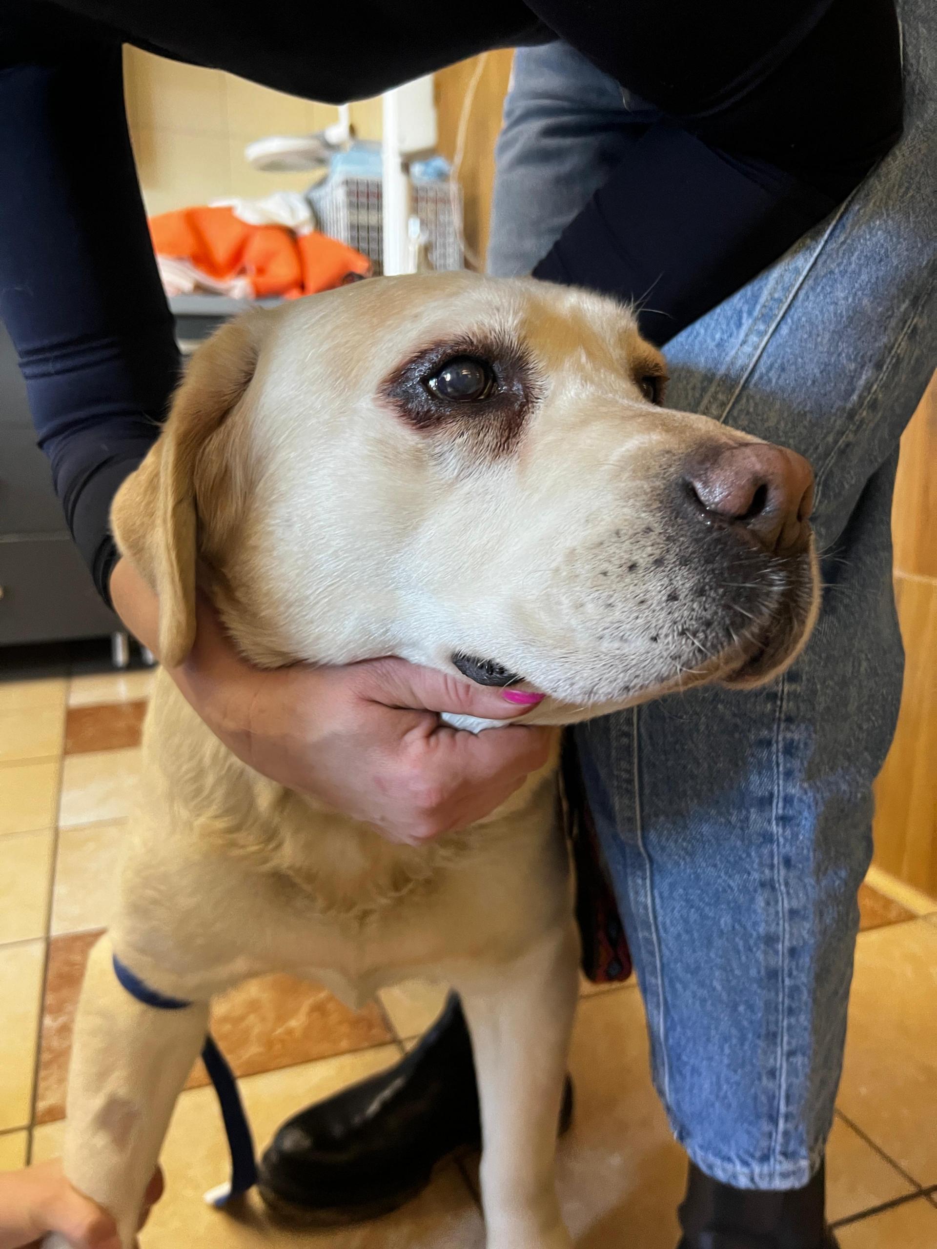 Nach den ersten Untersuchungen wissen wir bereits einiges. Ihre Ohren sind in einem sehr schlechten Zustand, starker Milbenbefall. Innere und äußere Parasiten. Ein Körper, der viel zu lange alleine zurechtkommen musste, weil niemand rechtzeitig eingegriffen hat. Ich würde diese Liste gern hier schon beenden, doch das schwierigste Thema sind ihre Augen. Die Veränderungen sind allergischer Natur und die Ärzte sagen klar, dass eine Operation und eine plastische Korrektur der Augenlider notwendig sind. Erst dann wird Maja wieder normal leben können und endlich keine Schmerzen mehr haben. Vor ihr liegen außerdem weitere Untersuchungen und Tests auf Futtermittelallergien. Dazu kommt noch ein weiteres Problem, das man sofort sieht. Maja ist stark übergewichtig. Das ist nicht nur eine Frage des Aussehens. Übergewicht belastet ihre Gelenke, ihr Herz und ihren gesamten Organismus, der ohnehin schon genug zu tragen hat.