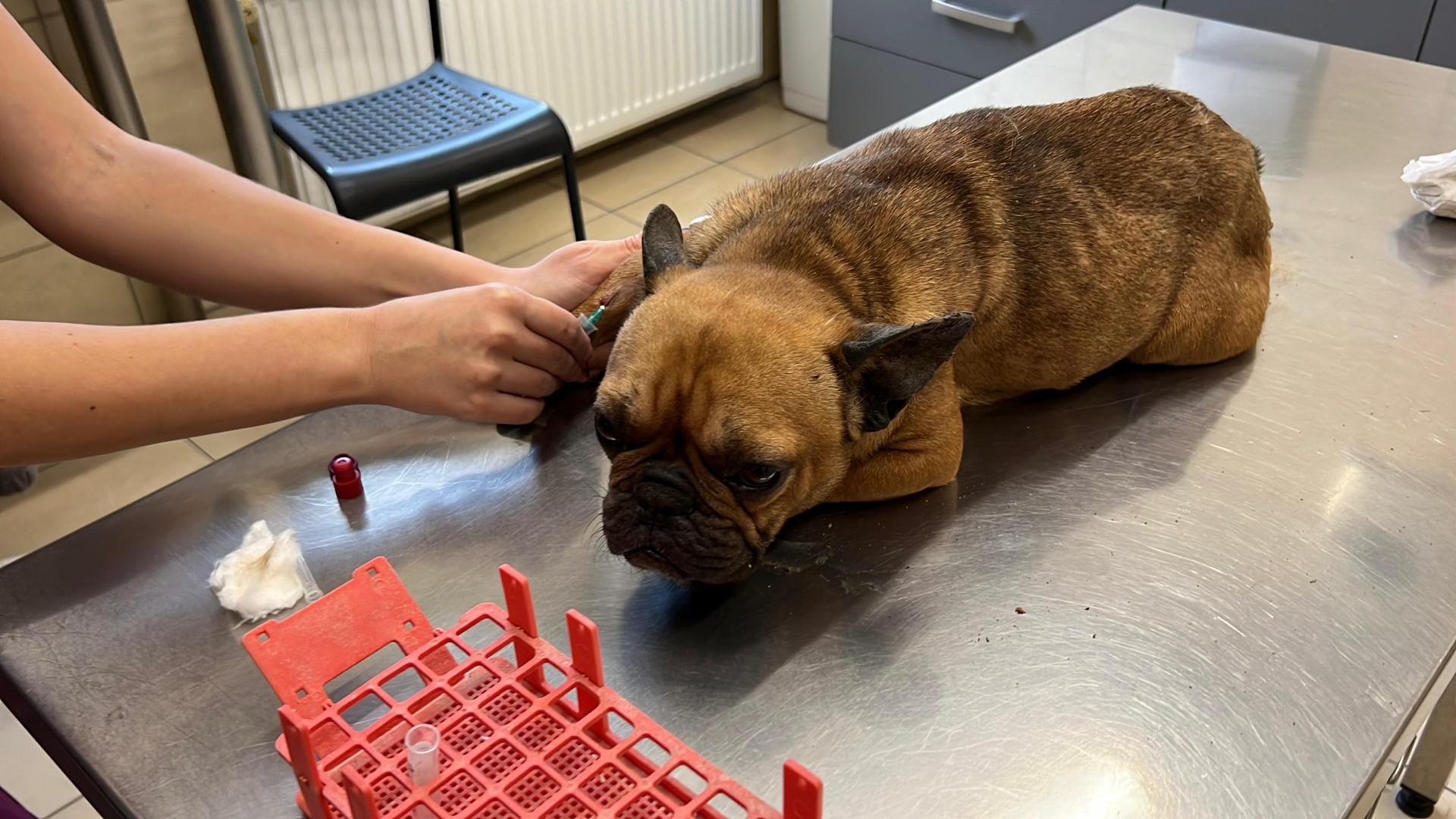 Sie zittert am ganzen Körper. Nicht nur vor Angst, sondern auch vor völliger Erschöpfung. Wir vermuten Gewalt, denn solche Reaktionen entstehen nicht ohne Grund. Dazu kommen schwere Leberprobleme, ein massiver Wurmbefall und ein insgesamt sehr kritischer Zustand. Wir befinden uns mitten in der weiteren Diagnostik, denn ihr Organismus steht an der Grenze des Überlebens.